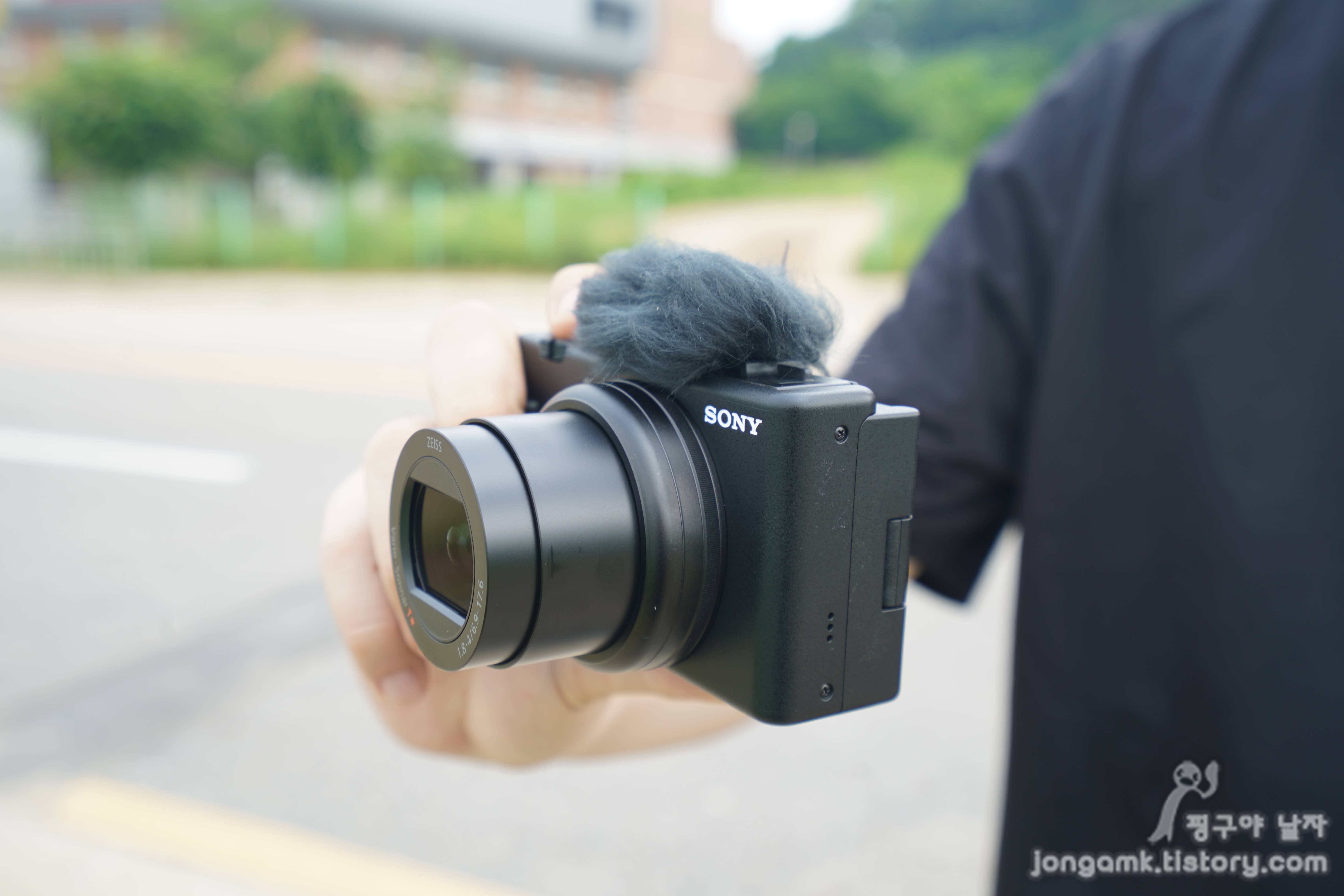 소니에서 출시된 브이로그카메라 중 가장 가벼운 모델 중에 하나가 아닌가 싶습니다. 주머니에 넣고 다닐 수 있을 정도로 작아 슈팅그립이 없이 외출할 때는 정말 편해요. 물론 주머니가 약간 불룩하지만 ㅋㅋ