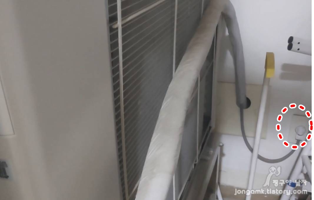 먼저 엘지 휘센 인공기능스스로 에어컨의 전원 플러그는 실외기에서 공급을 받으니 실외기 쪽으로 가셔서 전원 플러글 뽑고 작업을 시작해야 합니다.