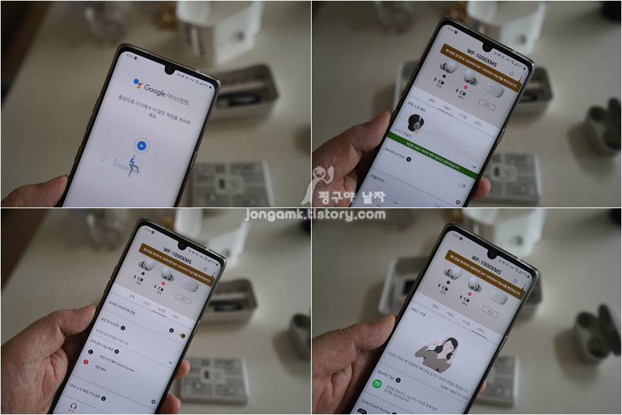 음성제어도 가능한데 개인적으로는 구글 어시스턴트를 사용하는 게 더 편하더라구요. 소니 전용앱 Headphones으로 WF-1000XM5의 다양한 기능과 컨트롤을 할 수 있으니 참고하세요.