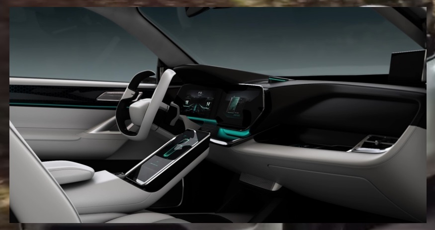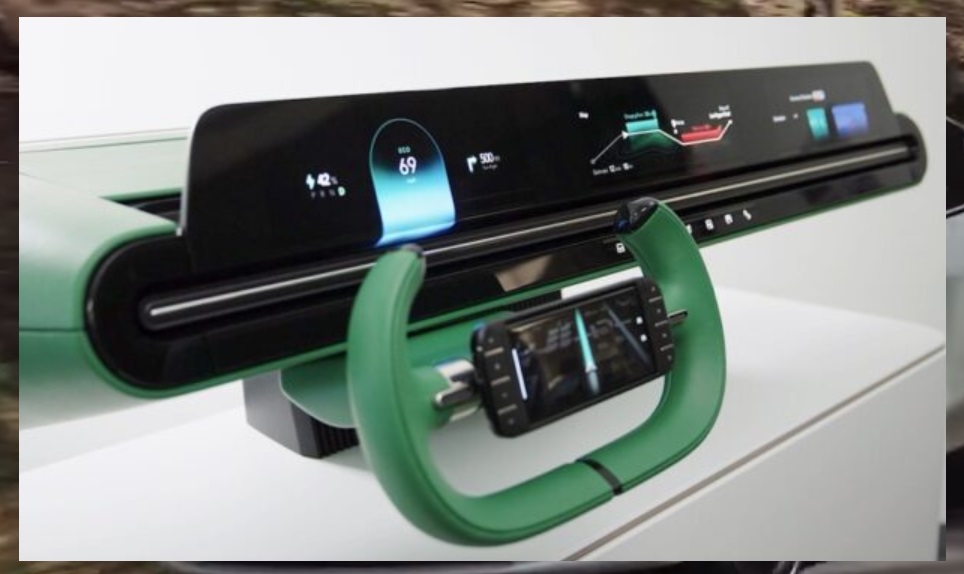 가운데에는 폴더블 P-OLED 기술을 활용한 18인치 대형 중앙정보디스플레이가 있고 양쪽에 90도로 회전하는 2개의 디스플레이가 각각 계기판과 보조석디스플레이로 활용됩니다.