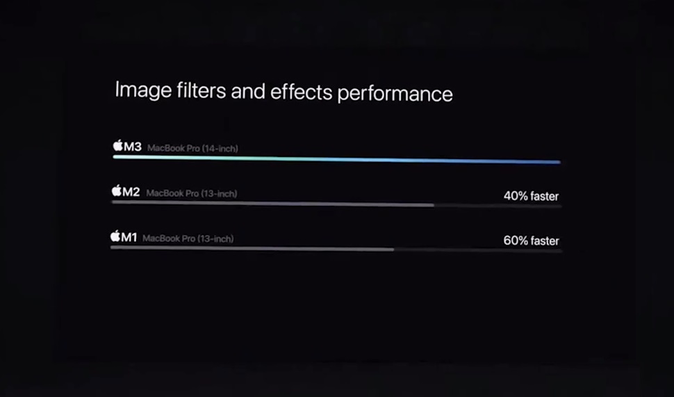 아이폰15 프로 및 아이폰15 프로 맥스의 A17 프로 플랫폼과 일치하는 최첨단 3nm 프로세스 덕분에 M3 칩의 전력 효율성은 더욱 높아졌습니다. 애플은 M3 CPU 및 GPU 성능을 기본 Iris Xe 그래픽 칩이 탑재된 인텔 코어i7 1360P 프로세서가 탑재된 노트북과 비교하여 25%의 전력 소비로 동일한 성능을 제공한다고 밝혔습니다.