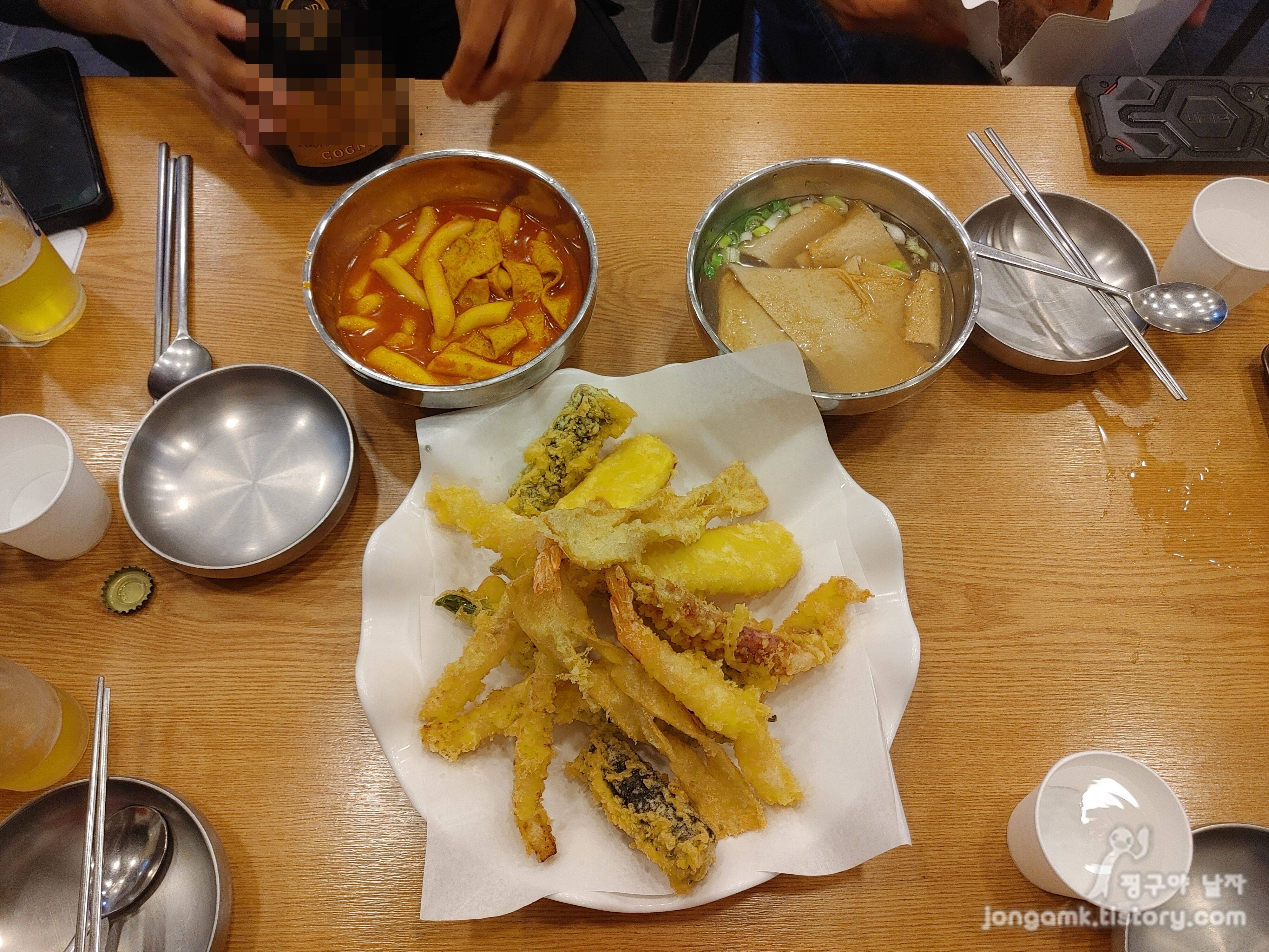 떡볶이 국물에 고구마튀김을 찍어 먹는 맛 놓칠 수 없죠. 2차를 예를 하고 간단히 그리고 가볍게 먹으려다 추가 주문으로 더 먹게 되었답니다. ㅋㅋ 주류는 맥주를 판매하기 때문에 가볍게 한 잔 해도 좋을 것 같아요.