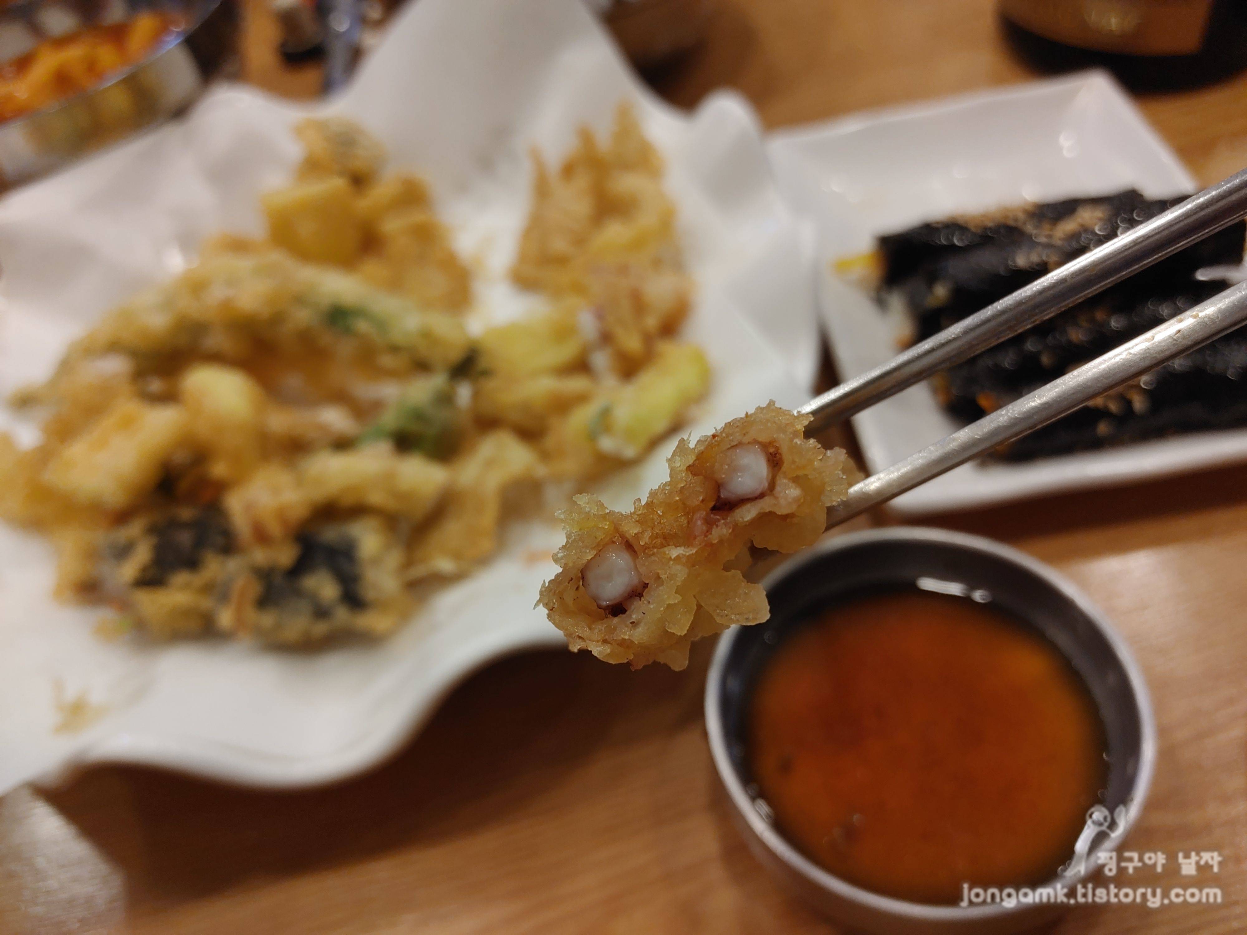 그러나 바삭함에도 결이 다르다~ 뭐 그렇게 표현하고 싶네요. 일단 수제튀김이면서도 재료가 신선하고 특색이 있는 메뉴도 있었는데 가위로 자를 때 바삭하는 소리는 지금도 먹고 싶어 지게 만듭니다.