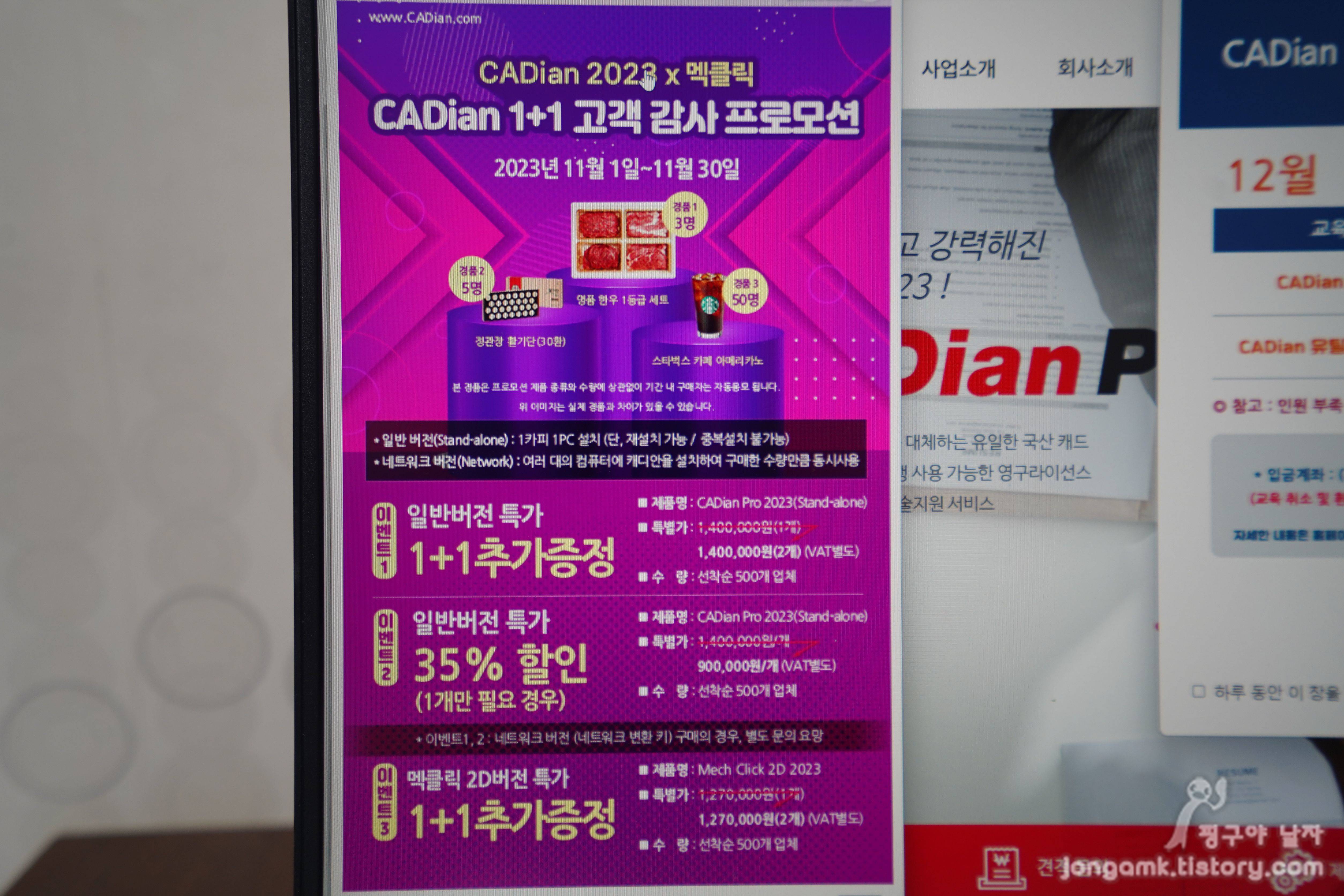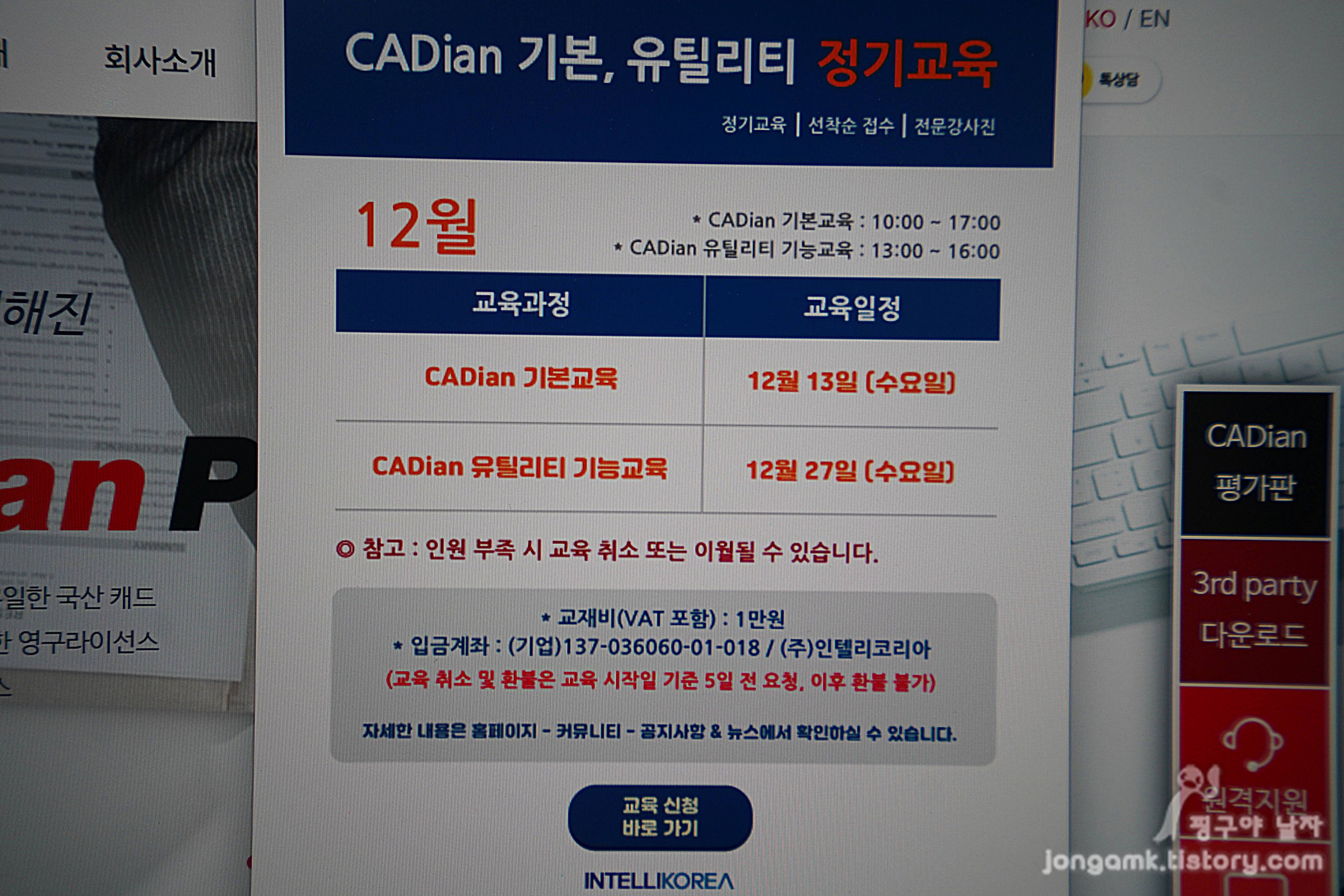 신입직원이나 설계프로그램을 처음 사용하는 직원들에게 설계 프로그램을 별도로 교육하는 것도 기업의 입장에서는 부담이 될 수 밖에 없기 때문에 캐디안의 월 2회 기술 및 유틸리니 무료교육 그리고 실시간 원격 1:1 기술지원은 괜찮은 조건이 아닐까 싶습니다.