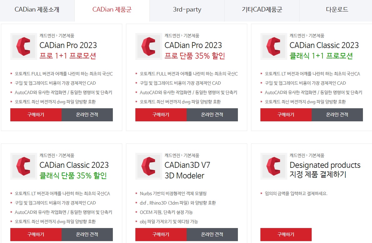 캐디안(CADian)은 오토캐드 Full 버전에 대응하는 Pro 버전과 오토캐드 LT 버전에 대응하는 Classic 버전을 모두 또는 필요한 설계 프로그램을 무료로 다운로드하여 30일 동안 사용해 보세요. 참고로 추가로 30일 더 연장하고 싶으면 캐디안에 문의하면 됩니다.