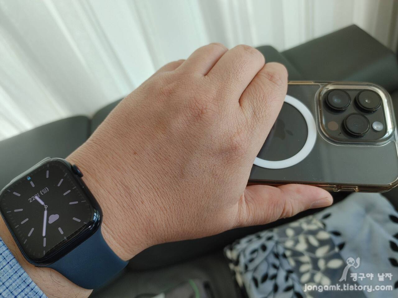 애플워치의 손정등 앱으로 사물을 보면 형태 정도를 알아볼 정도의 밝기를 사용할 수 있습니다. 물론 손목을 다른 쪽으로 돌리고 충분히 어두운 곳에 있는 경우 잠시 후 빛이 상당히 밝아지는 것을 볼 수 있습니다. 눈부신 정도는 아닙니다.