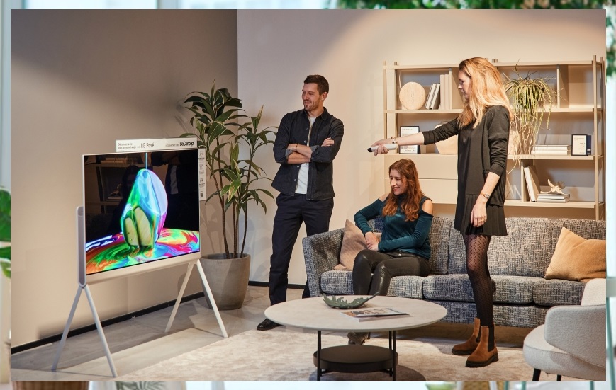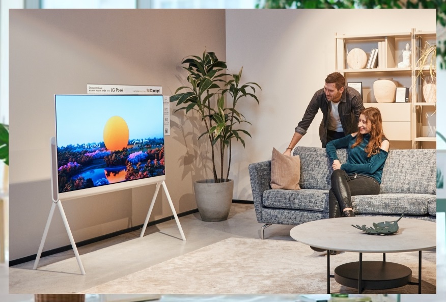 LG전자 유럽 프리미엄 가구 브랜드 보컨셉과 협력해 엘지 올레드 TV만의 독보적인 디자인을 강조하고 있습니다. 보컨셉은 프랑스 소재 매장으로 엘지 올레드 오브제컬렉션 포제TV와 보컨셉의 인테리어 가구들이 자연스럽게 어우러진 모습으로 관심을 유도하고 있습니다.