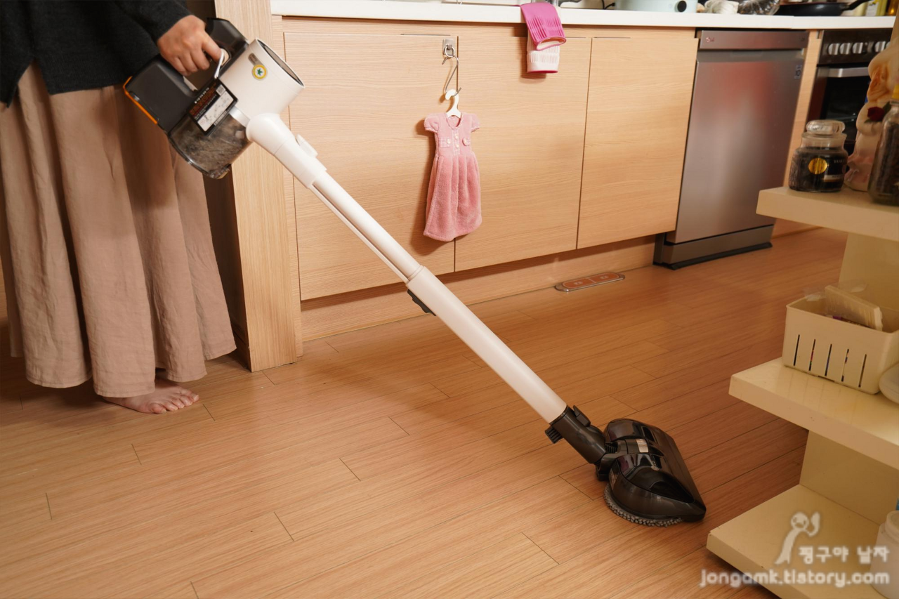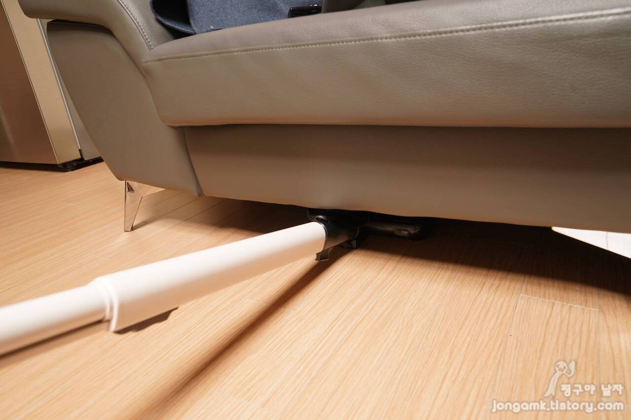 그밖에 무선청소기와 거치대 크기를 코드제로 A9과 비교해 약 30% 줄여 무게가 감소하는 게 중요한 역할은 한 것 같아요. 새롭게 추가된 듀얼 내장형 틈새 흡입구가 있으며 청소기의 흡입구, 연장관 등을 분리하면 일체형 틈새 흡입구가 내장돼 있으니 참고하면 좋을 것 같아요.