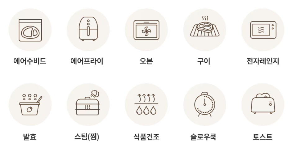 따라서 엘지 디오스 광파오븐은 신규 기능인 에어수비드를 포함해 오븐, 그릴, 에어프라이, 전자레인지 등 10가지 조리 기능을 제공하기 때문에 한 대로 다양한 조리가 가능해 주방공간을 좀 더 효율적으로 사용할 수 있겠죠.