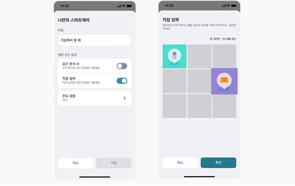 다시말해 LG전저의 AI 스마트케어는 사용자가 따로 바람의 세기나 방향을 조절하지 않아도 LG 씽큐 앱에서 설정한 배치를 기반으로 인공지능 기술로 공간을 분석해 최적의 쾌적함을 제공하게 됩니다.