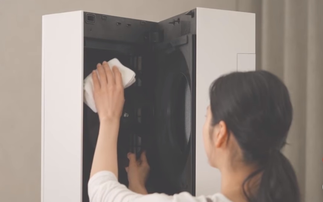 엘지 휘센 뷰 에어컨의 특징 중에 하나는 전면 패널을 사용자가 쉽게 열어 내부를 청소하도록 강화된 청정관리 기능입니다. 기존에는 후면에 있던 필터 청소만 했었는데 말이죠.