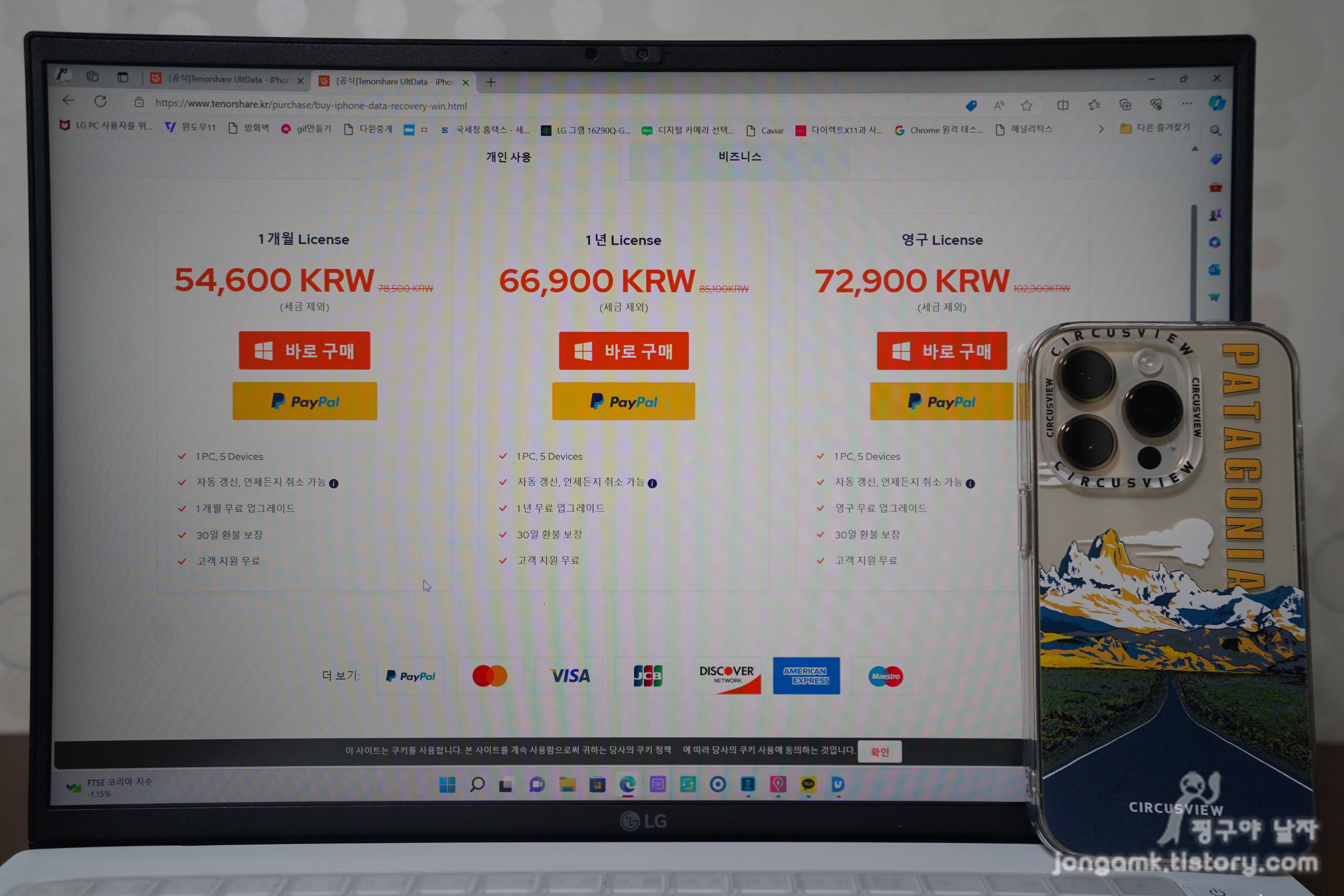 테너쉐어 얼트데이터 프로그램은 사용기간별 라이선스 가격이 다릅니다. 개인용과 비즈니스용으로 제공되는데 영구 라이선스와 1개월 사용 라이선스의 가격차이가 크지 않아 고민이 되기는 할 겁니다.