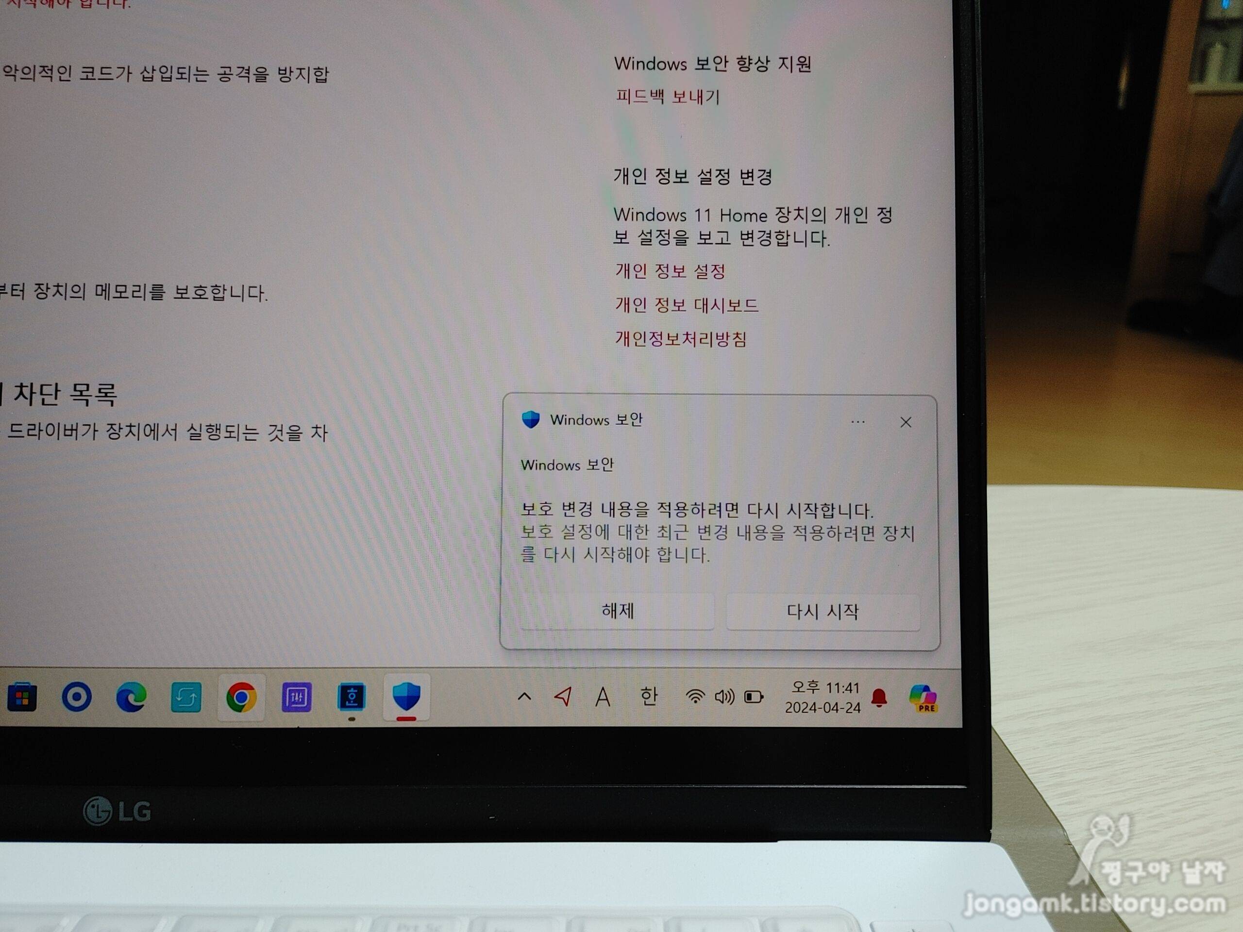 여기서 주목 McAfee 바이러스 백신 프로그램을 삭제하여 백신 프로그램이 없다면 자동으로 윈도우즈 디펜더가 작동합니다. 윈도우즈 디펜더는 뭘까요?