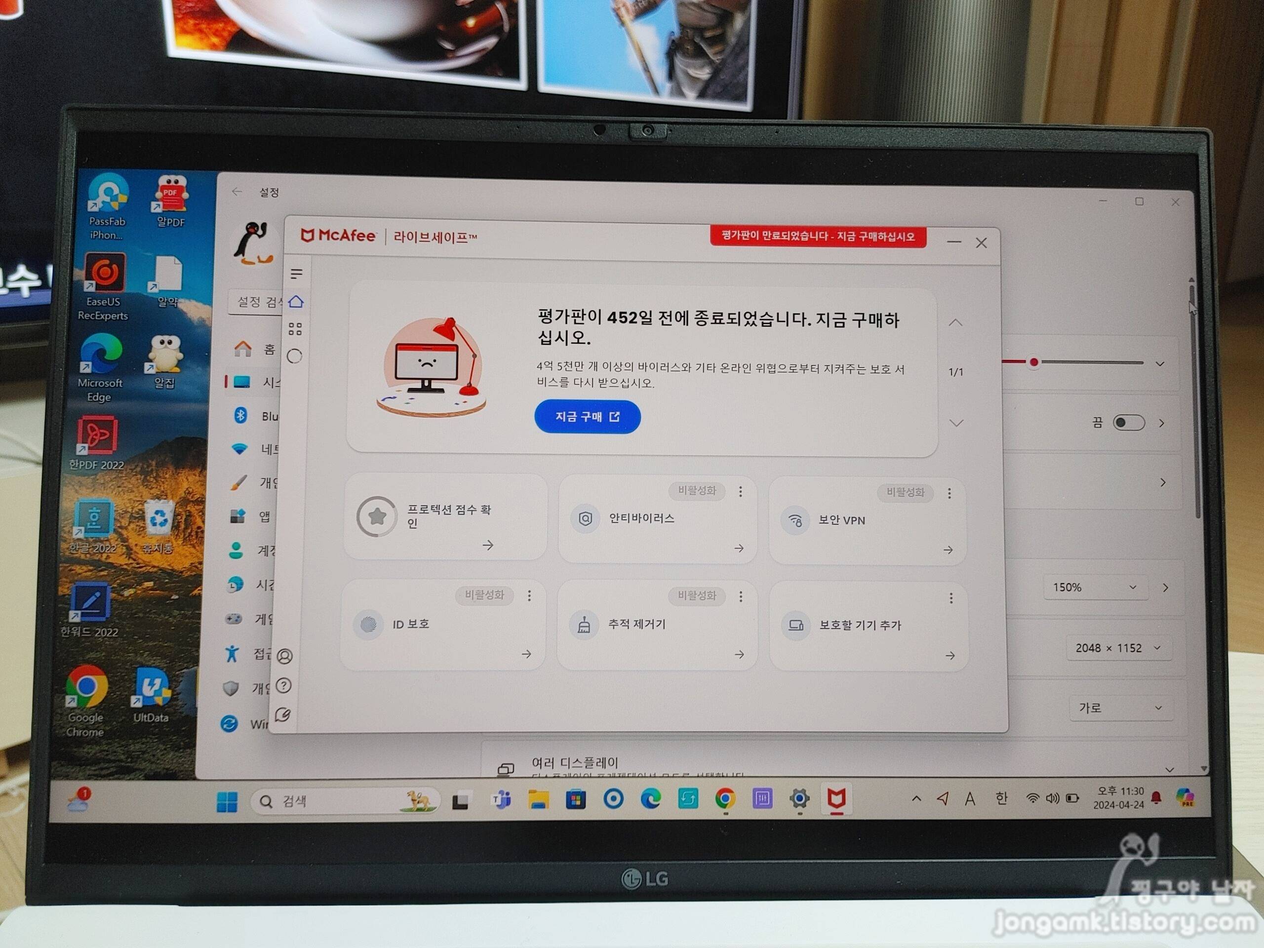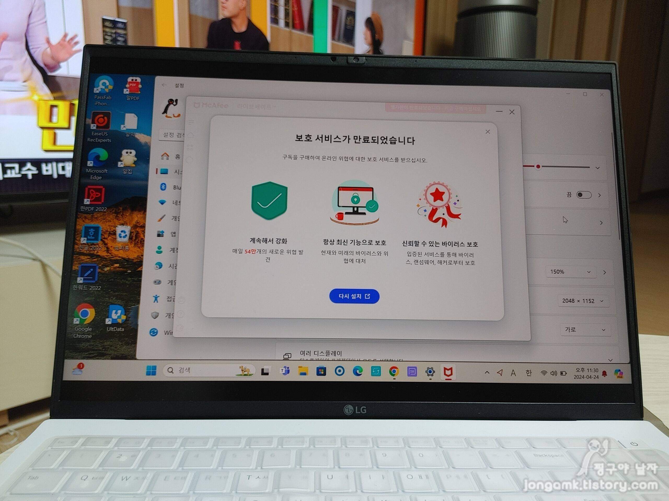 따라서 노트북 McAfee 바이러스 백신 만료 갱신 메세지가 뜨면 사용료를 지불하고 사용하지 않는다면 바로 삭제하세요. 바로 윈도우즈10 이상에서 기본으로 제공되는 마이크로소프트 디펜더가 작동되어 안전하게 보호받게 될 겁니다.