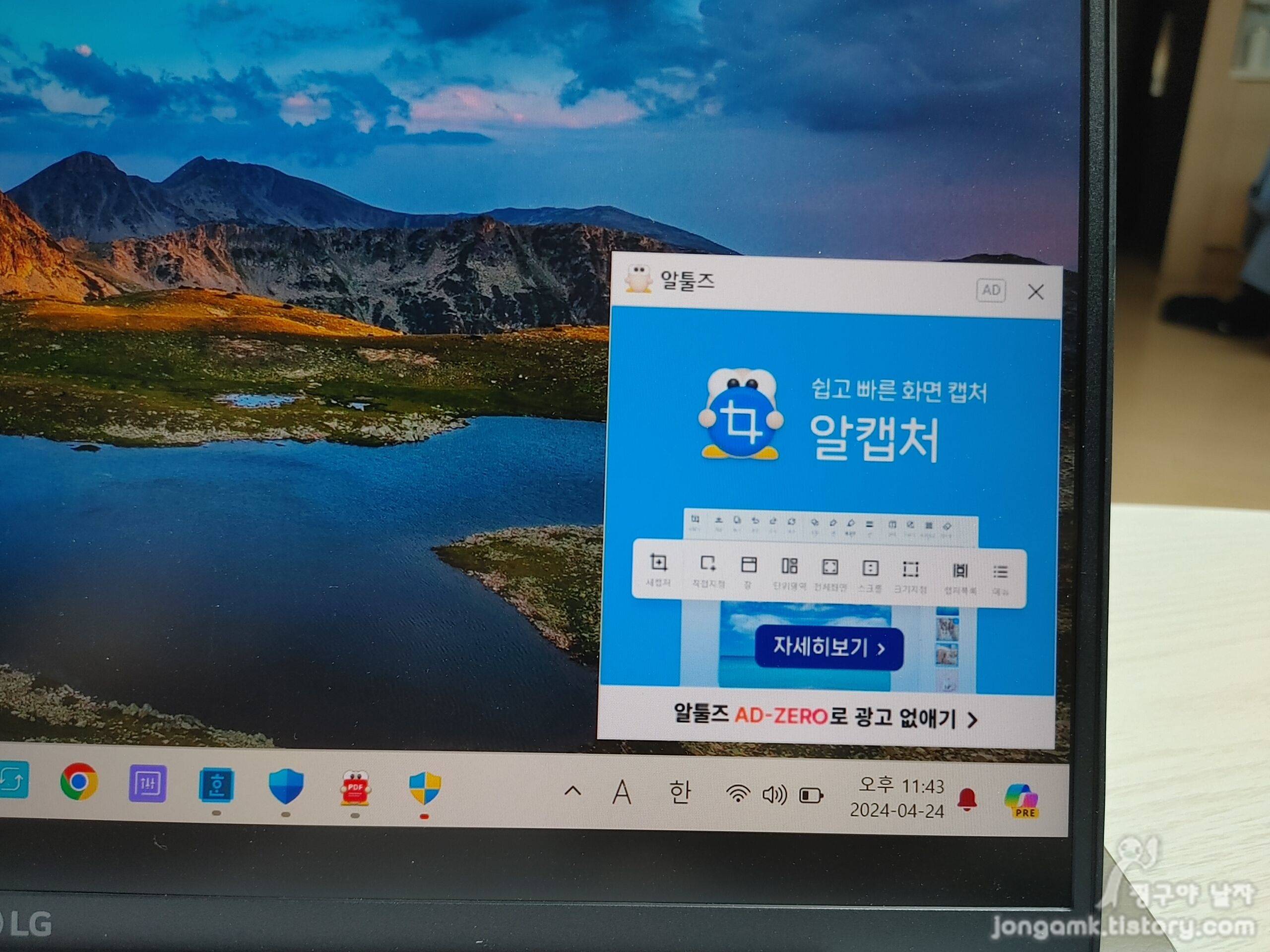 그런데 세상에 공짜는 없는 법입니다. 알약을 설치하고 필요한 기능을 무료로 사용하는 대신 우측 하단에 광고 배너가 떠서 노트북을 사용할 때 신경쓰입니다.