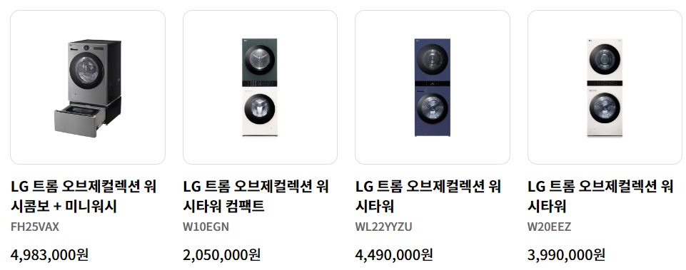 LG 세탁건조기 트롬 워시콤보와 워시타워 차이
