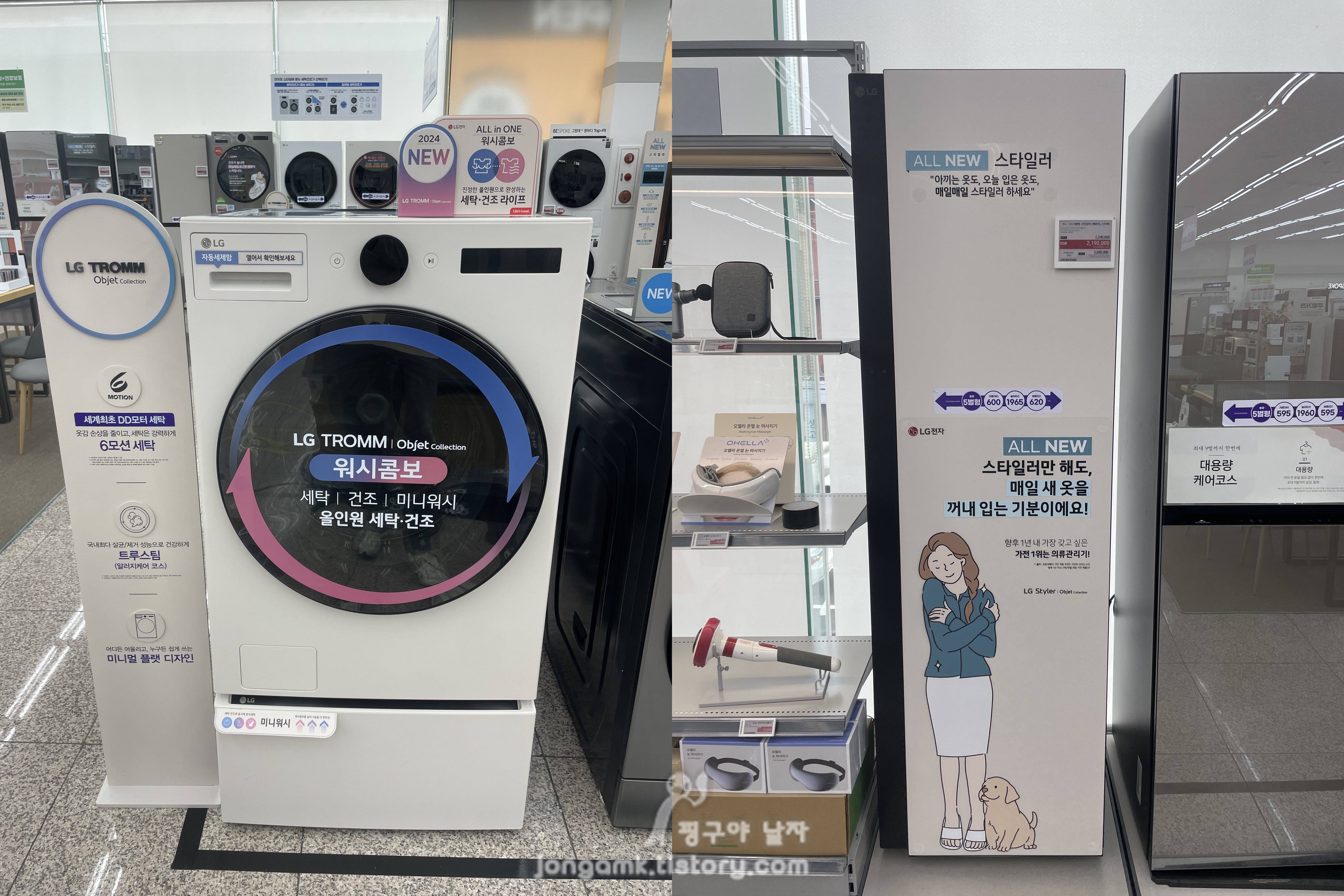 아마도 엘지 세탁건조기 워시콤보(FH25EAX)와 스티머가 있는 스타일러 5벌 최신형이 저렴다고 해도 한 번에 구매하는 게 힘든 분들도 분명 있을 겁니다.