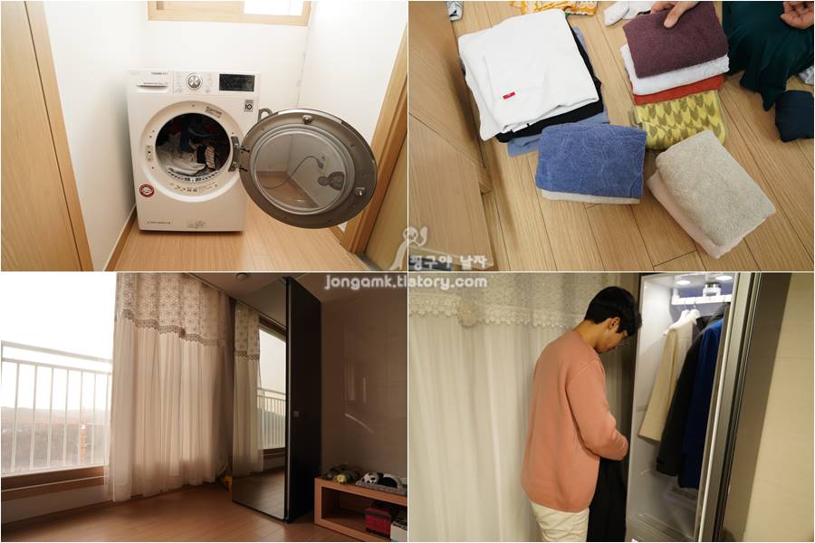워시타워는 워시콤보에 비해 가격은 저렴하지만 빨래가 끝나면 엘지 의류 건조기에 옮겨야 하는 불편함이 있어요. 빨래가 끝나도 외출을 할 수 없어요. 빨래 건조기로 옮겨야 하기 때문이죠. 그리고 드라마 보다가 깜빡하면 빨래에서 냄새가 나서 다시 해야 하는 경우도 있죠.
