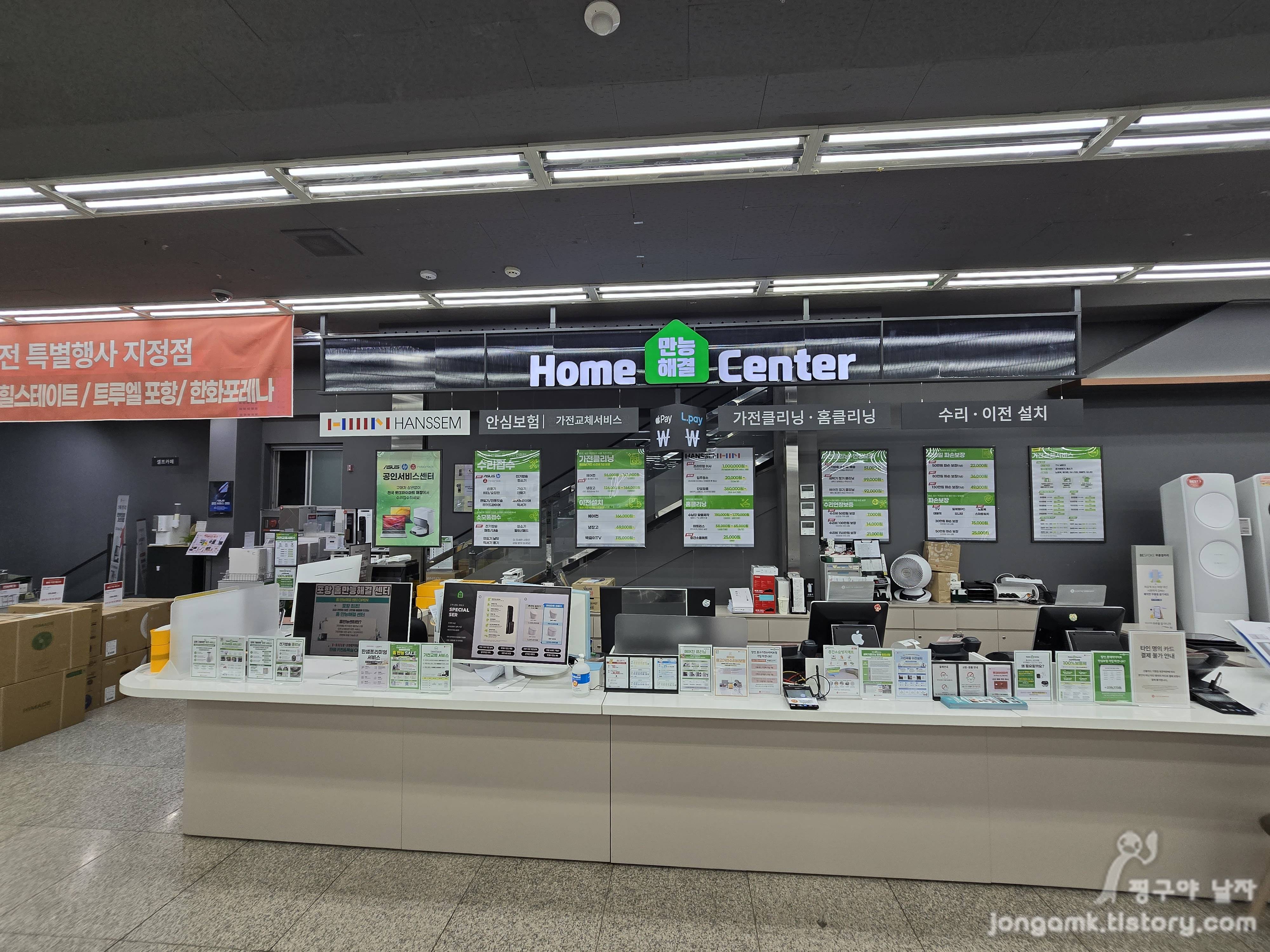 롯데 하이마트 오광장점이 입주할인지정점이라 저렴하게 구매할 수 있는 장점도 있지만 안심보험과 세탁기 클리닝 서비스를 제공하는 Home Center가 있어 더욱 알찬 서비스를 받을 수 있어요.