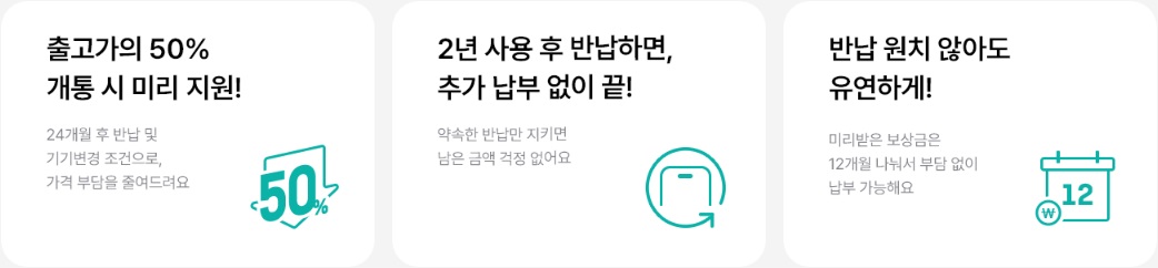 네 번째 실질적인 단말기 할인 + 중고 보상까지 누릴 수 있습니다. 갤럭시 Z 시리즈는 가격대가 높은 프리미엄 제품군이지만, KT닷컴에서는 단순 출고가 할인 외에도 다양한 프로모션이 결합되어 최대 50%까지 할인 혜택을 받을 수 있습니다. 미미보상으로 실사용 부담 대폭 절감 12개월 무이자 할부 또는 5% 캐시백 중고폰 반납 시 최대 25만 원 보상까지 가능 기존 폰을 안전하게 처분하면서, Z 시리즈로의 전환 비용을 현저히 낮출 수 있는 기회입니다.
