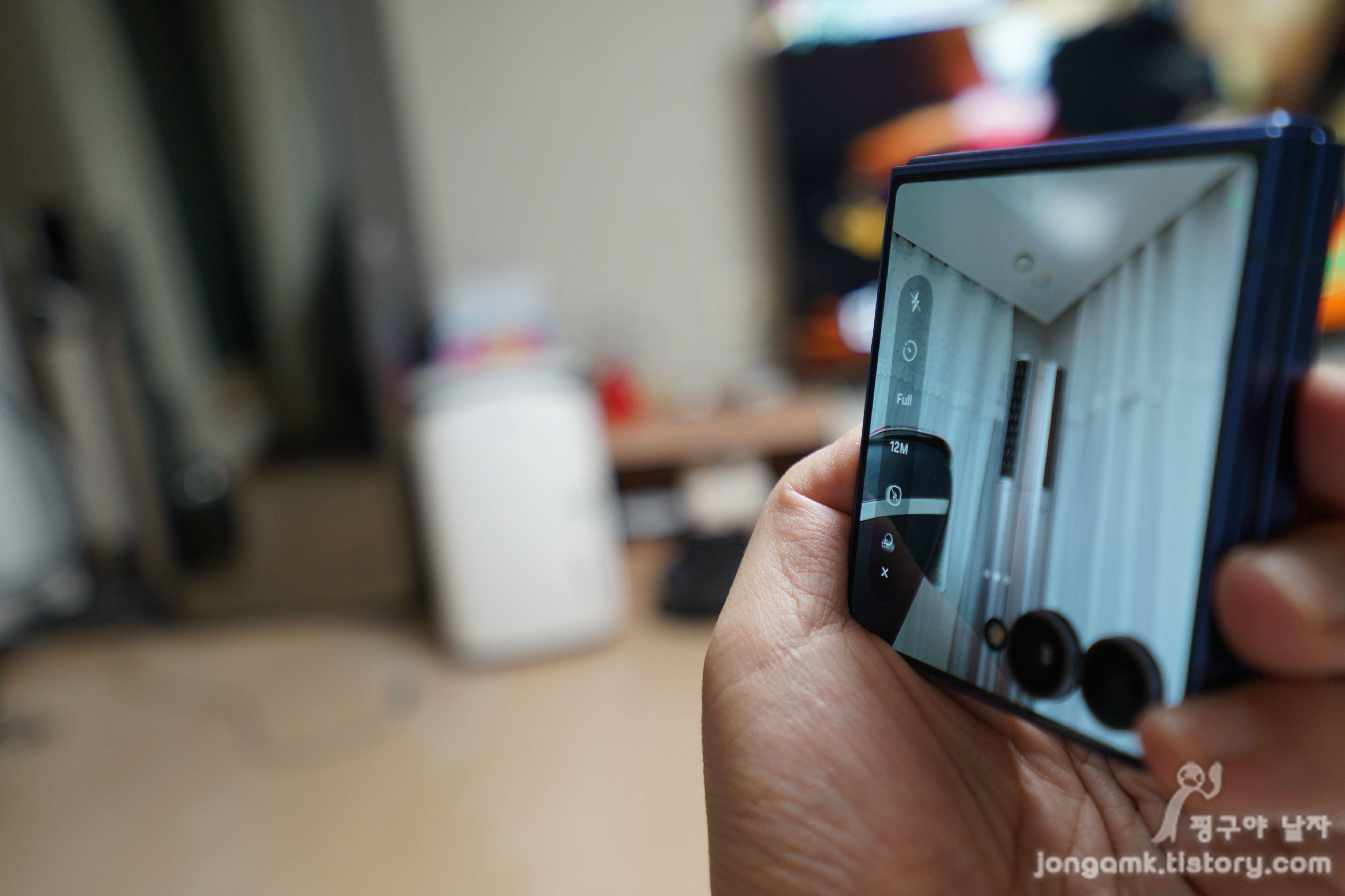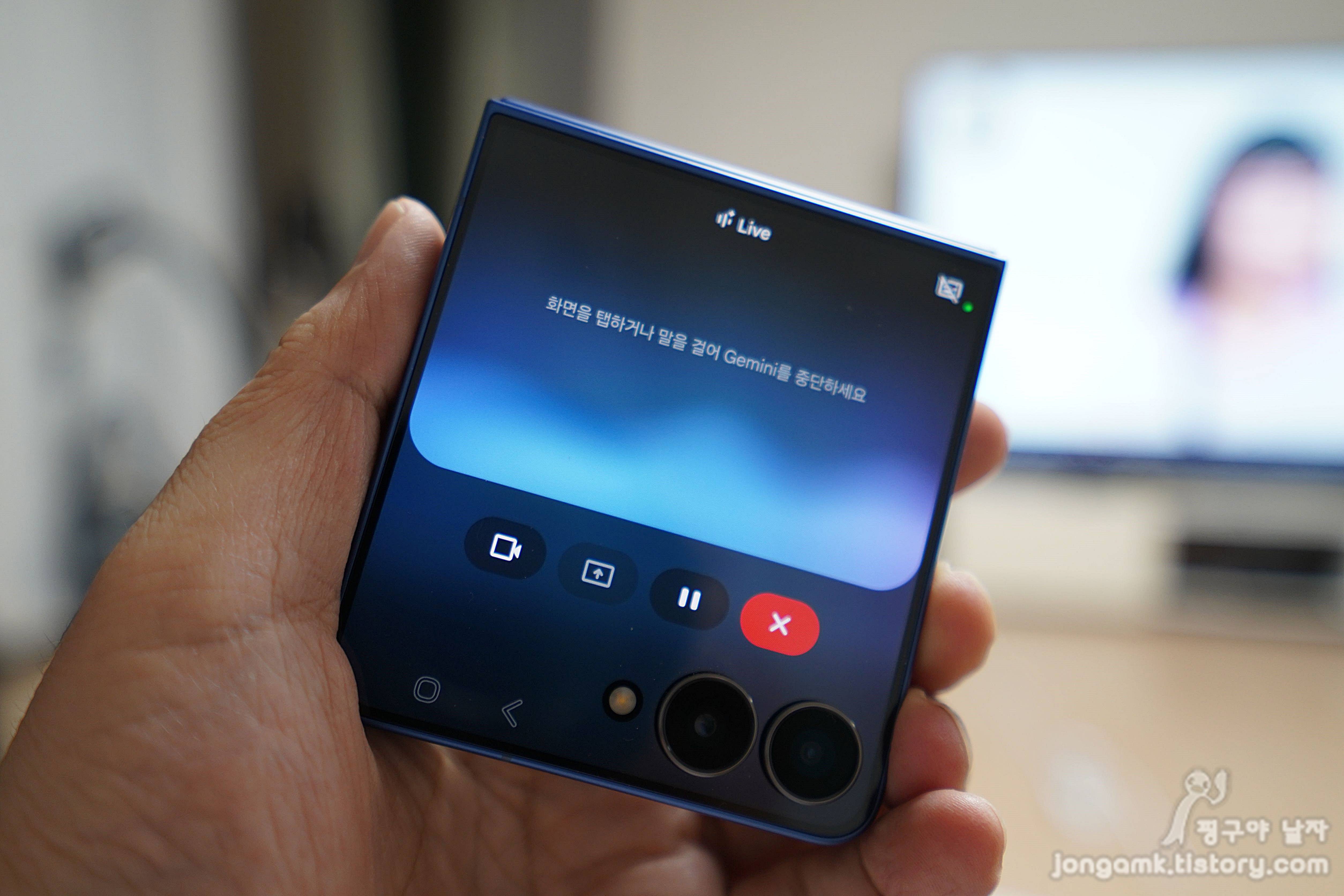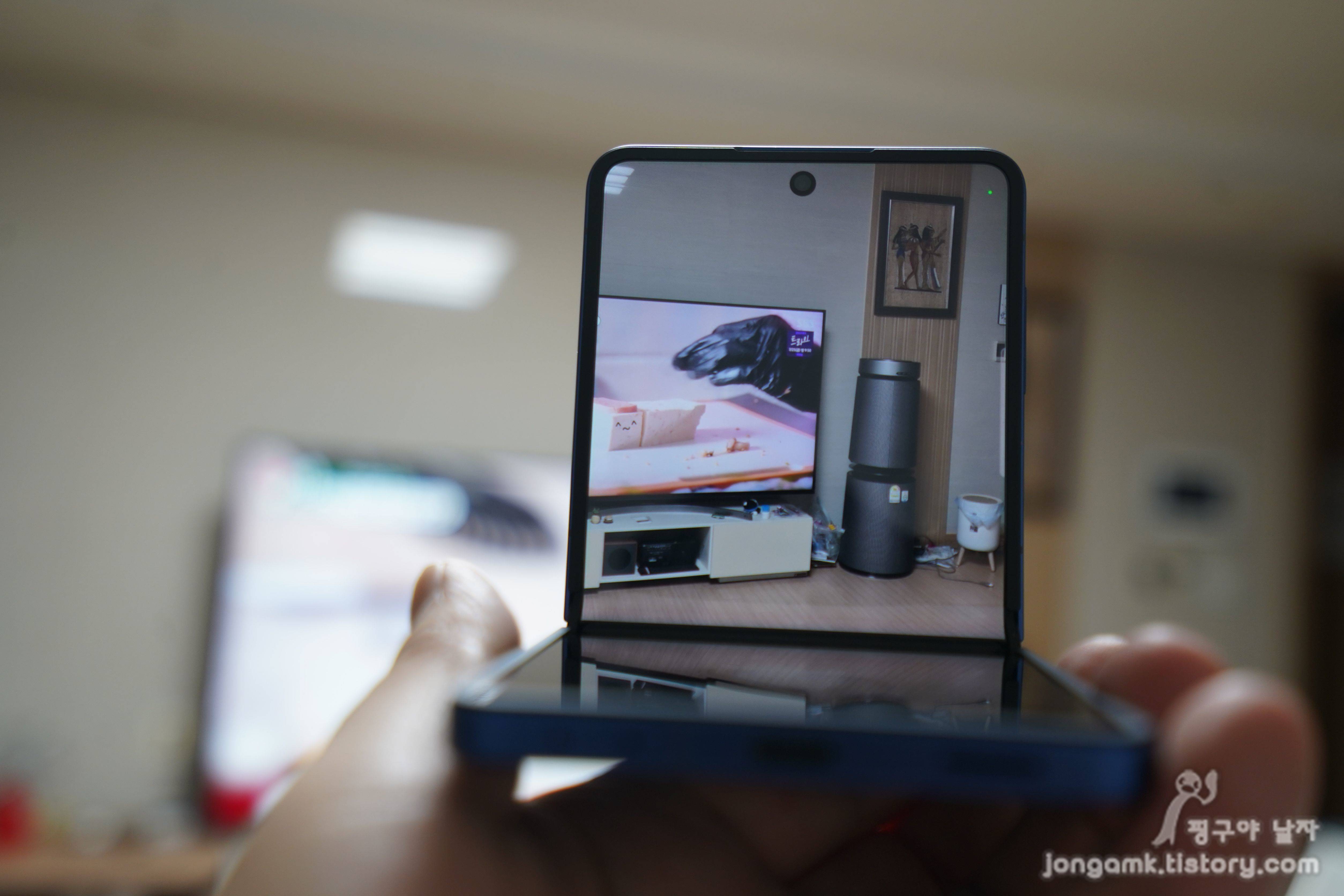 카메라 스펙 자체는 전작과 유사하게 유지되었지만, AI 기능의 결합과 디스플레이 활용이 경험을 바꿨습니다. 후면에는 5천만 화소 메인 카메라와 1,200만 화소 초광각, 전면에는 1,000만 화소 셀피 카메라가 탑재되었으며, 이 카메라들을 플립 형태를 활용해 삼각대 없이 고정 촬영이 가능합니다. 덕분에 일상 브이로그 촬영이나 셀카, 화상 회의 모두 훨씬 자연스럽고 유연하게 할 수 있습니다.