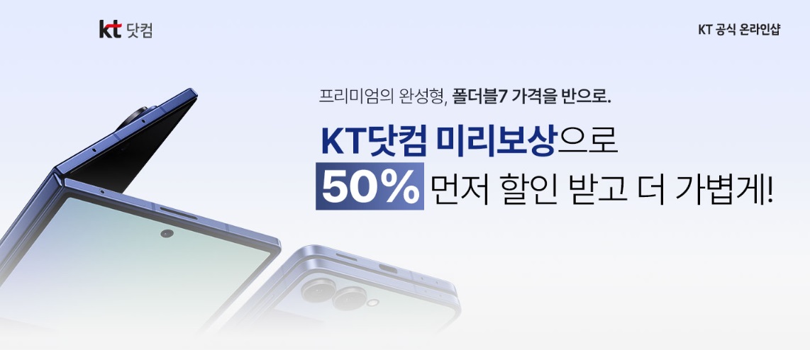 갤럭시 Z 시리즈의 최신작 갤럭시Z 플립7과 갤럭시Z 폴드7이 공개되면서 많은 소비자들 중에는 어떤 경로로 사전예약할지를 고민하고 있습니다. 이 시점에서 KT닷컴의 사전예약은 단순한 조기 주문’ 수준이 아니라, 가격·보안·사은품·배송 등 전방위적인 가치를 제공하는 전략적 선택지로 주목받고 있습니다. 그 이유를 8 가지로 짚어드리겠습니다.